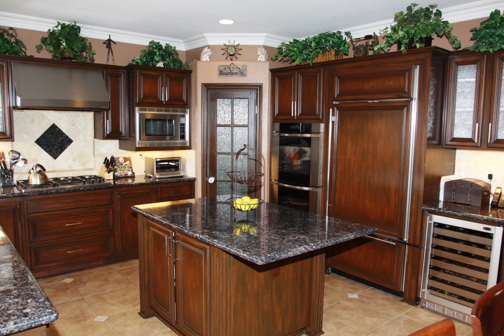 The large eat in kitchen boasts a sizable island with bar seating, crisp white cabinets, granite counter tops, stainless steel appliances and opens to the inviting family room with fireplace.